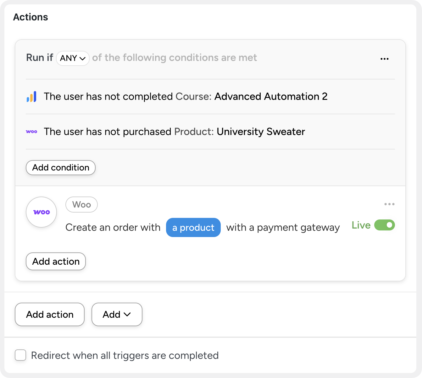 Looking for more ways to automate your LearnDash and WooCommerce upsells? Check out this article: 3+ WooCommerce Upsell Automations That Actually Drive Sales.