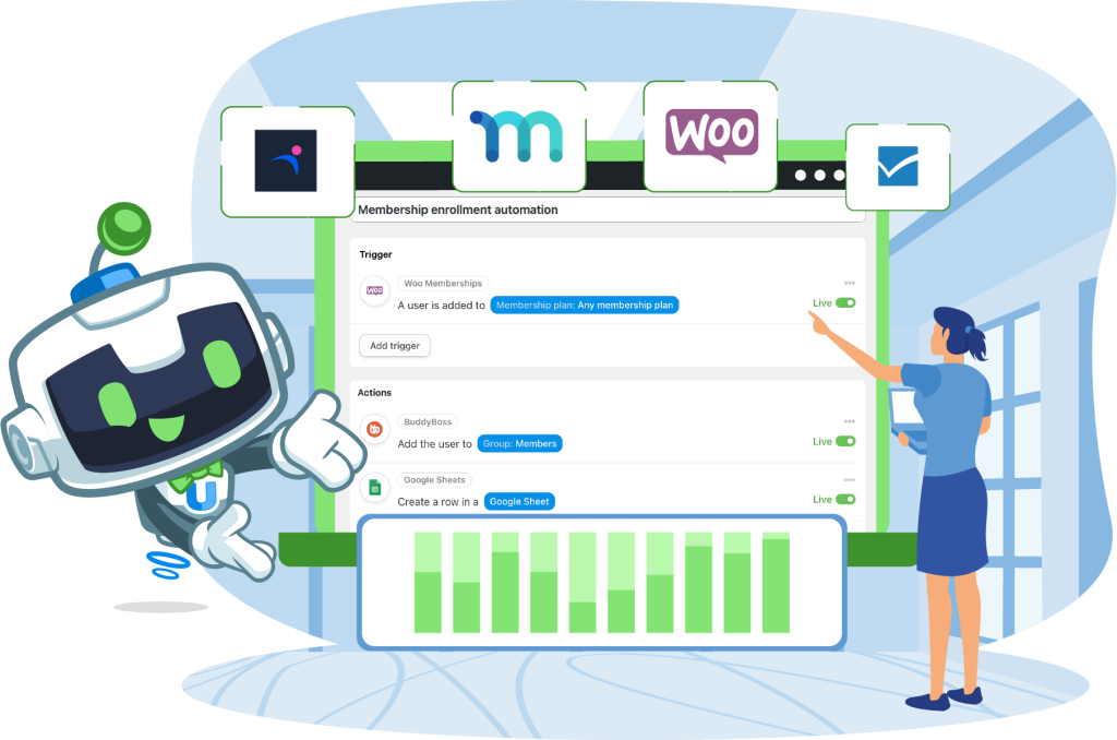 Engagement is the key indicator of any successful membership platform. But trying to engage with every member individually or monitoring each member’s activities to provide personalized feedback would require more hours than exist in a day. Unless you leave your members in Uncanny Automator’s delicate digital hands.