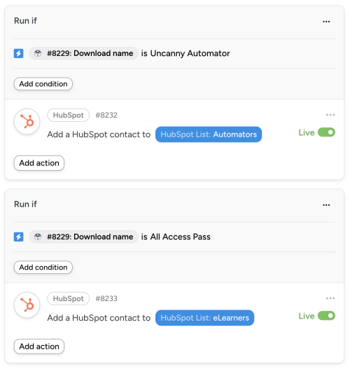 With the trigger and action that we’ve set up, Automator will add your new contacts to HubSpot. But, with a second action, you can also segment your new contacts.