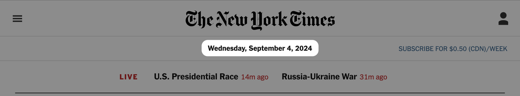 Take, for example, a news website like the New York Times with the current date at the top of the homepage.