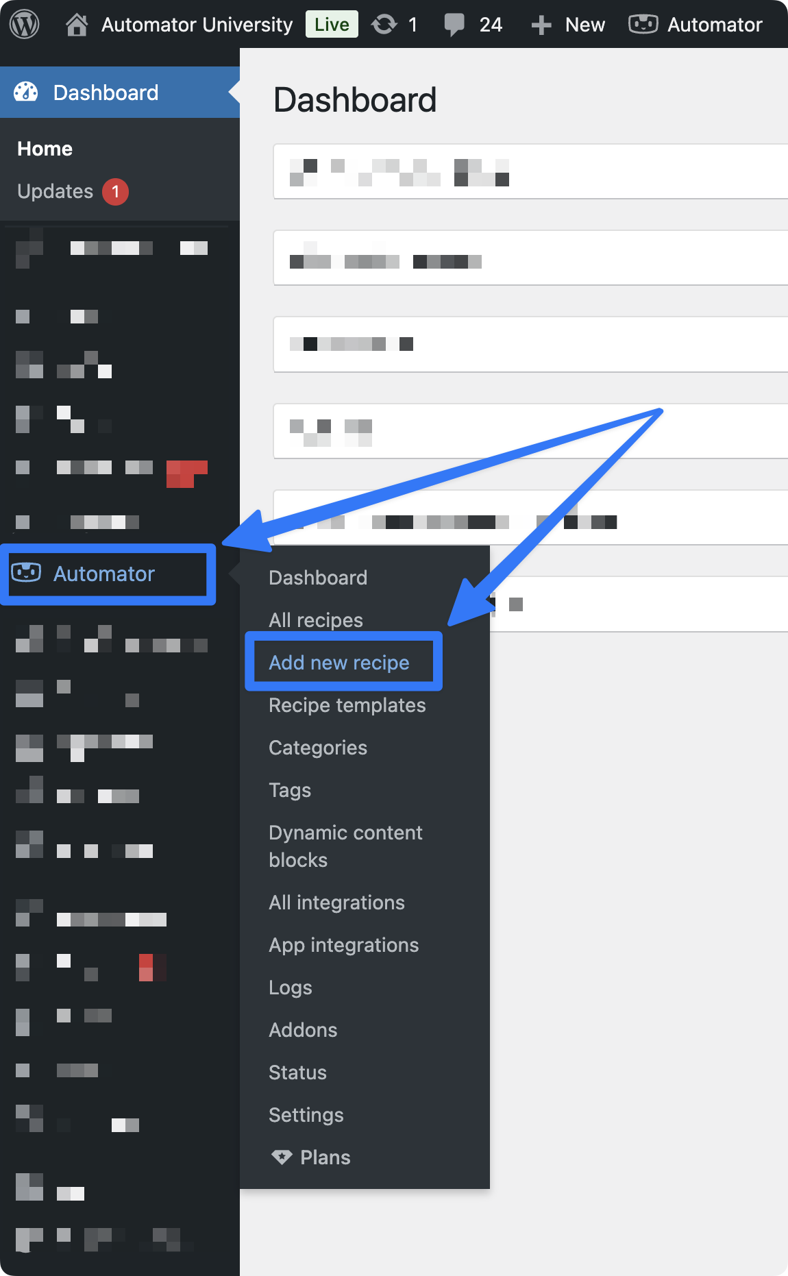 From your WordPress Admin Dashboard, navigate to Automator > Add new recipe.