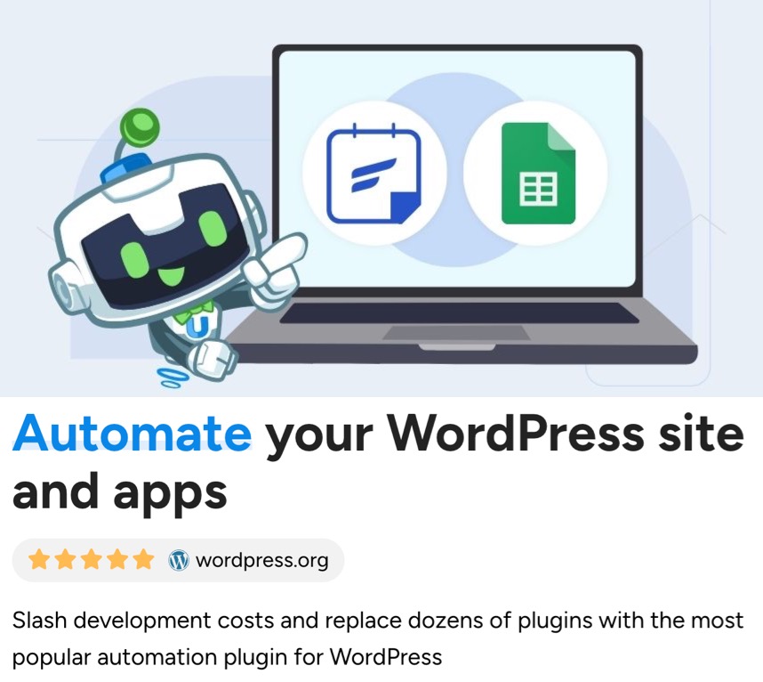 Uncanny Automator is the #1 integration and automation tool for WordPress websites. Using simple combinations of triggers and actions called recipes, you can automate workflows across all of your apps and plugins.