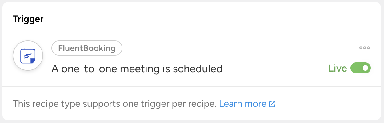 In the recipe pictured above, we’re able to log all of our one-to-one FluentBooking meetings in Google Sheets as they are scheduled.