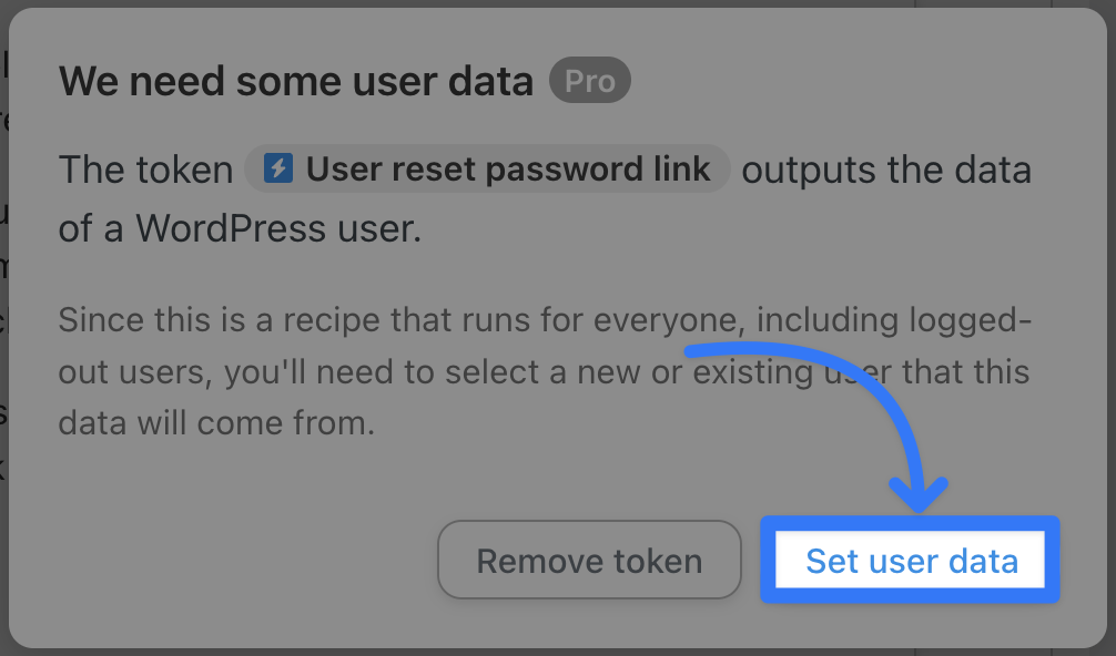Once you select the token, you will see a modal appear. This is where we get to create our new WordPress user.