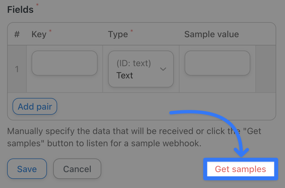 Automator will present you with a user form. Fill out the fields using tokens from the webhook trigger.