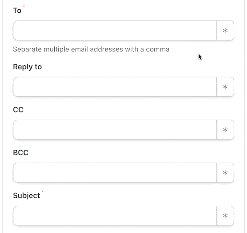 To select a token, click on the Asterisk in any given field and select the corresponding token. For example, we selected the Field #2 email token from our webhook trigger for the To field.