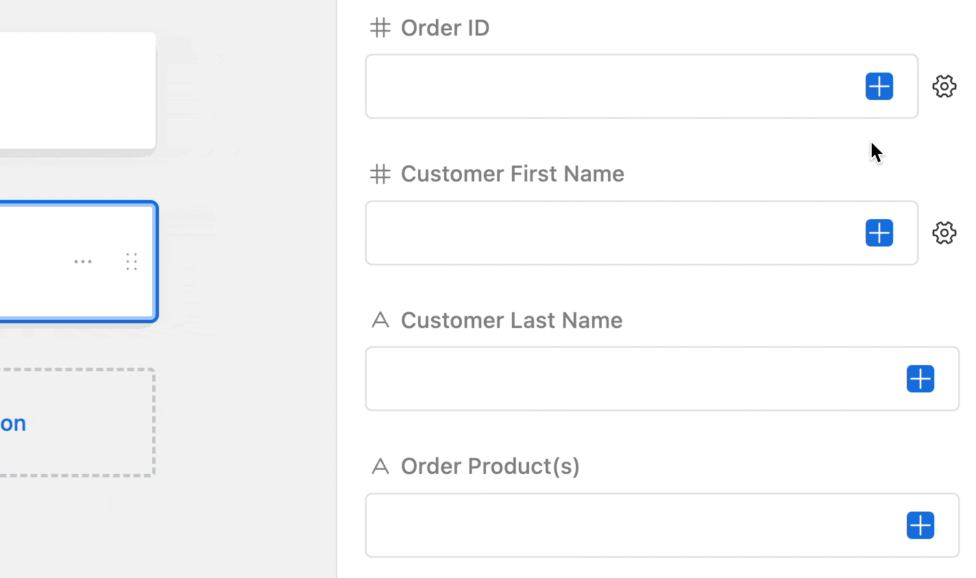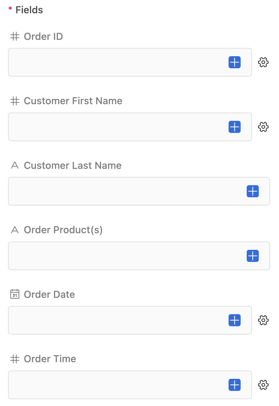 Similar to using tokens to populate Value fields in Automator, we’re going to use the data from our test to populate the fields of our Airtable Automation. To select the relevant data, click on the Plus in each field and select the corresponding value from the webhook.