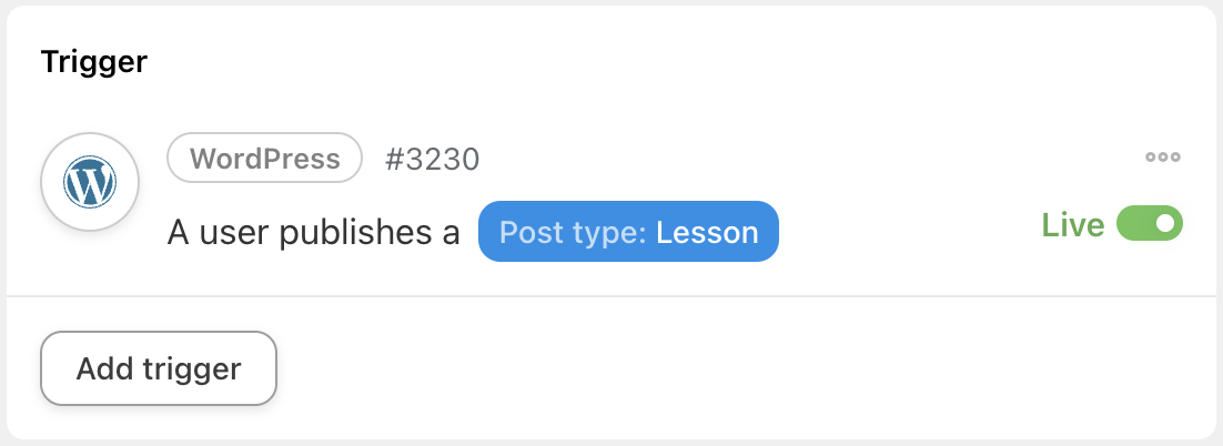 In the Triggers panel, from the menu of available integrations, click on WordPress.