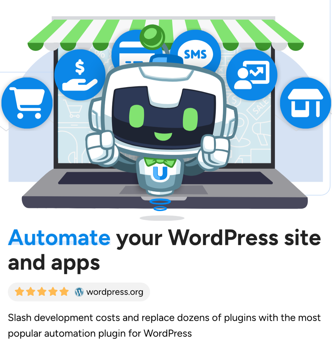 Uncanny Automator is the #1 automation and integration tool for WordPress websites. Whether you’re running an ecommerce business, a membership website, or an affiliate blog, Automator is a must-have tool for saving time, cutting costs, and boosting your bottom line.