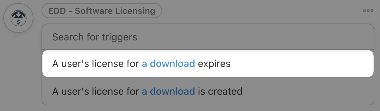 In the Trigger panel, from the menu of available integrations, select Easy Digital Downloads – Software Licensing. From the dropdown list that appears, select the trigger for which you would like to segment your Mailchimp audience.