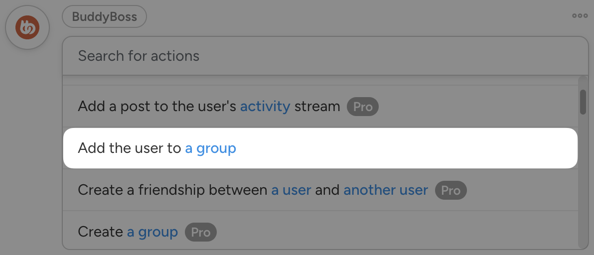 With the recipe pictured above, we’re able to make a post to a BuddyBoss group’s activity stream whenever one of our donors makes a large contribution. This kind of social reinforcement and recognition is sure to boost our charitable community’s engagement.