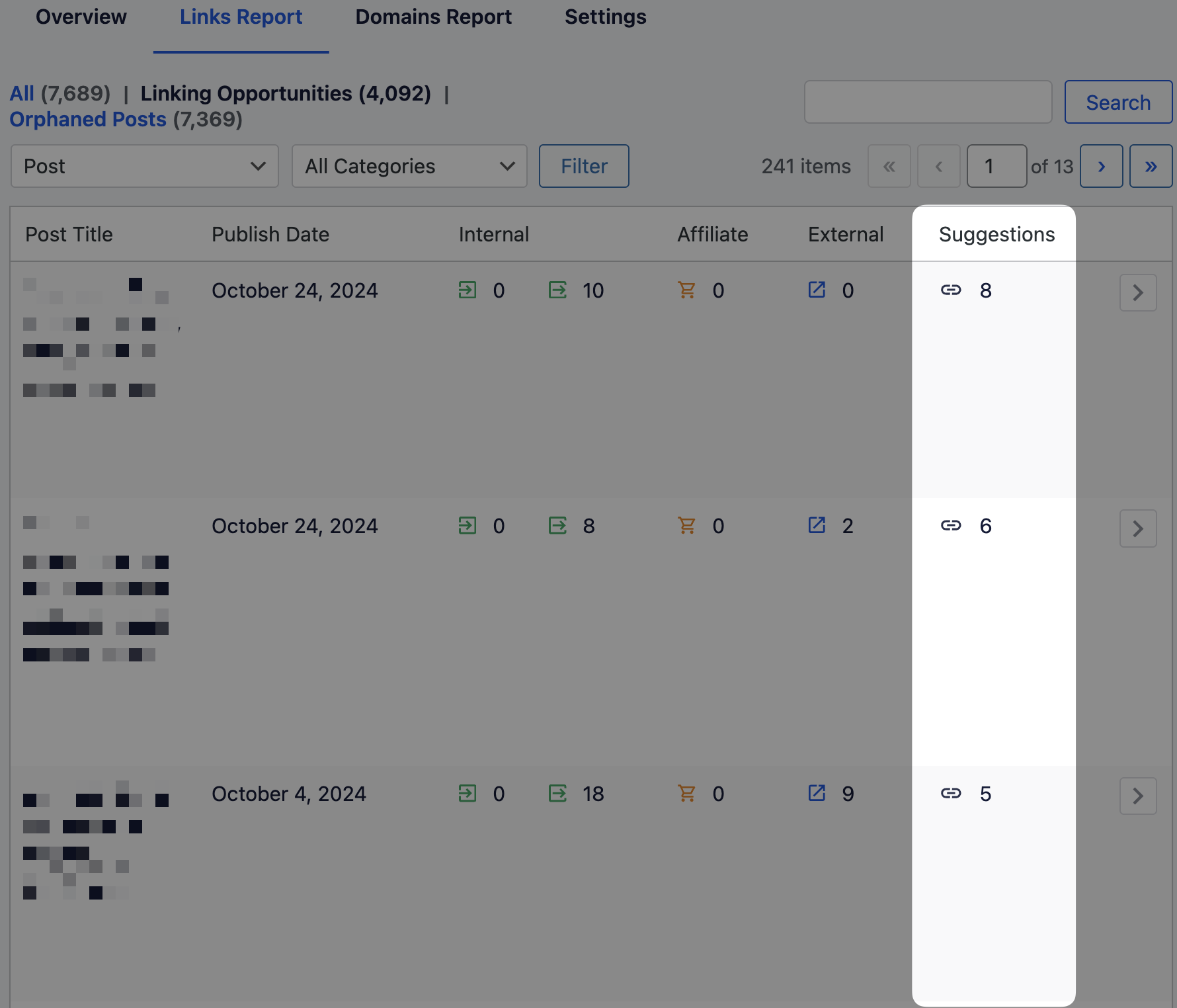 AIOSEO’s Link Assistant makes internal linking a breeze. This feature suggests relevant internal links as you create content, helping you quickly connect your posts without the manual hassle. It even allows you to add these links in bulk, saving you a ton of time.