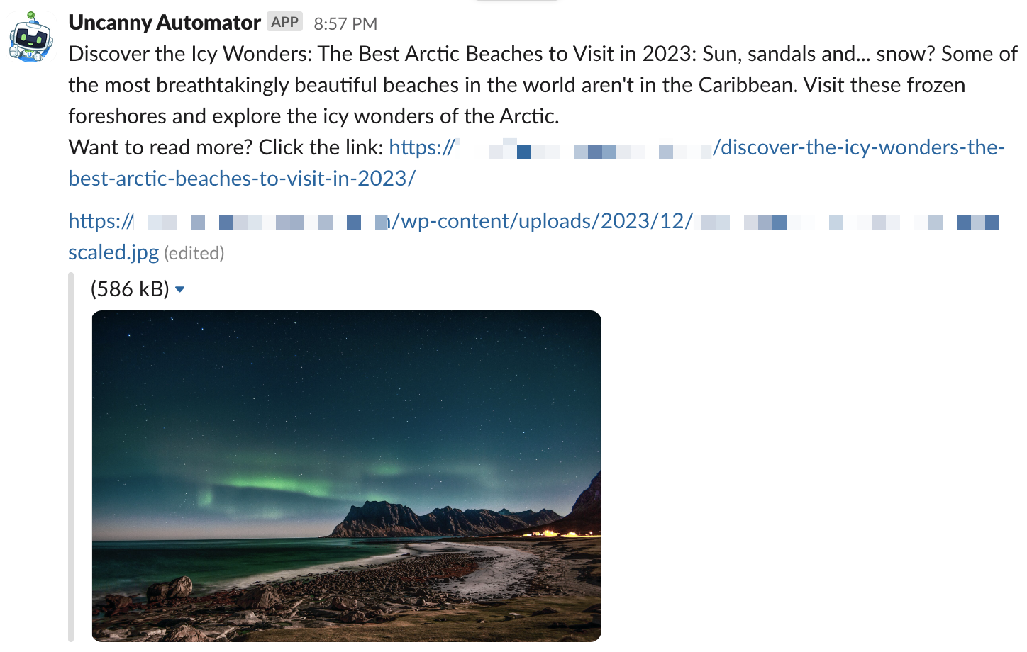 Now that your recipe is Live, give it a try. Here’s what our message looked like in Slack.