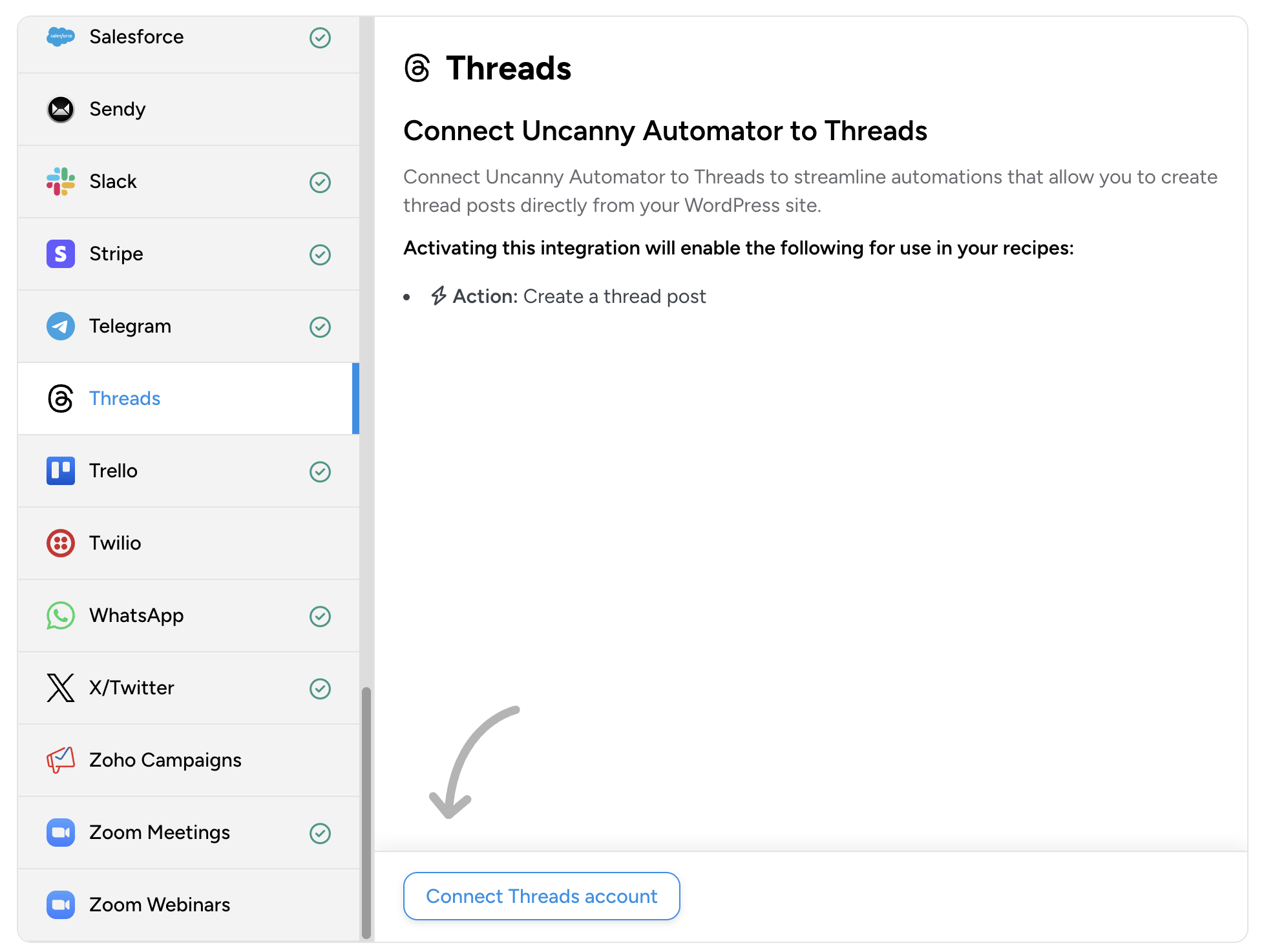 Now that you have connected your free Automator account or activated your Pro license key, you’re just a few steps away from integrating your Threads account.