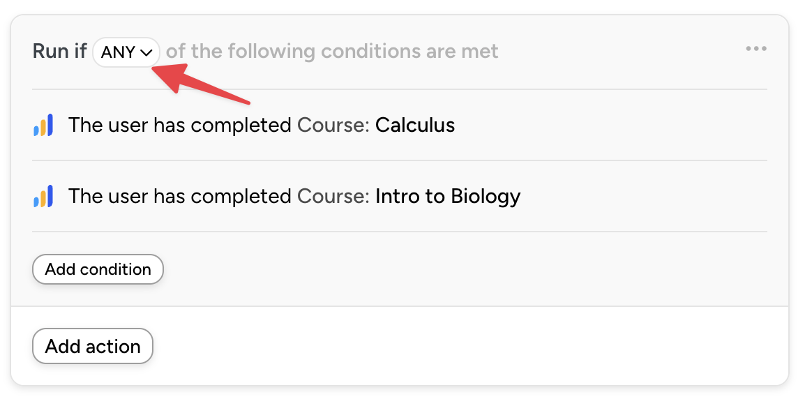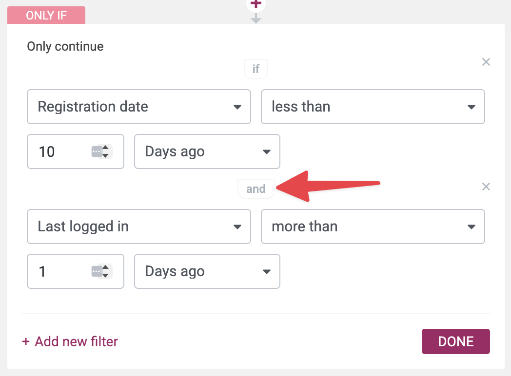 In Uncanny Automator, conditions within a filter can configured in two different ways: either all conditions must be met or any condition can be met: