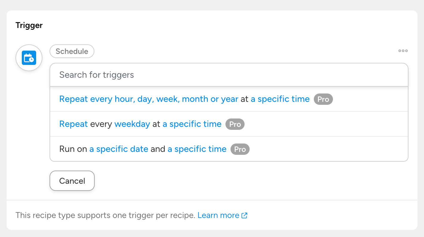 Unlike Thrive Automator, Uncanny Automator provides the ability to run recipes on a recurring schedule, which enables you to automate recurring processes.