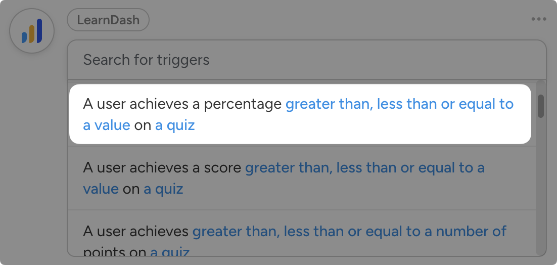 In the Trigger panel, from the menu of available integrations select LearnDash.