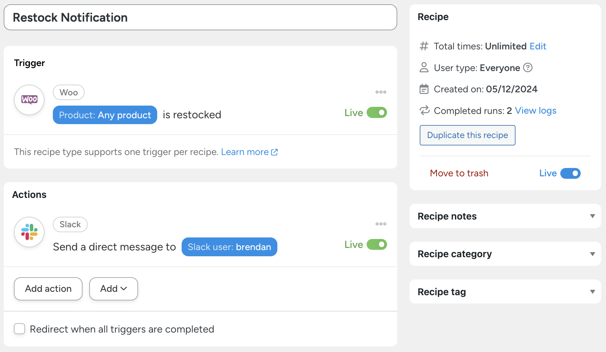 With Automator, however, you can set up low stock notifications to send Slack messages, text messages, WhatsApp messages, and—if you must check your inbox—even emails.