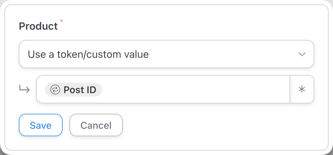 In the Product field, select the Use a token/custom value > Loop > Post ID as we did in the previous recipe.