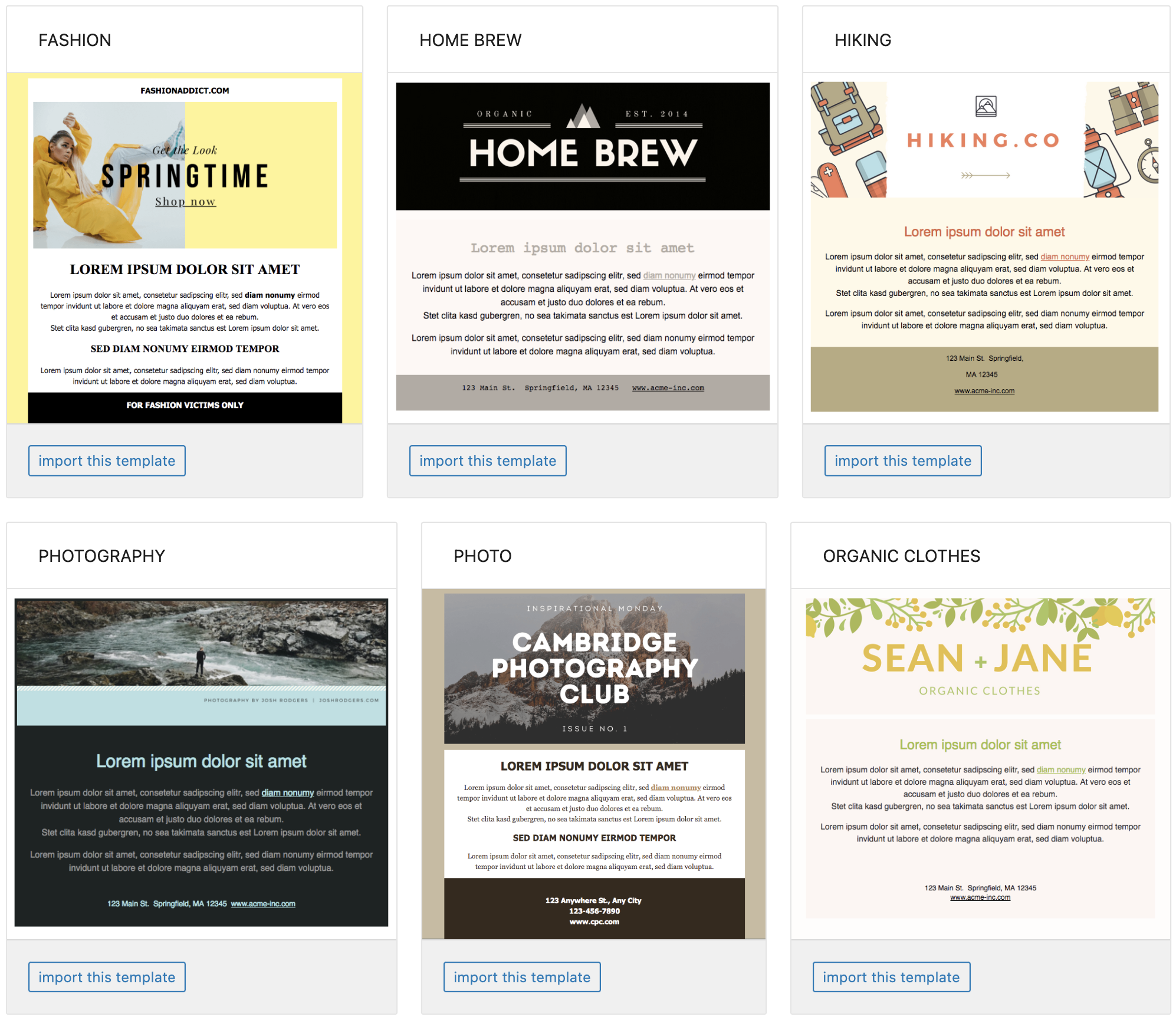 You can either build your email from scratch or select from one of the existing templates by clicking Browse our template library. To save time, we have selected a template.