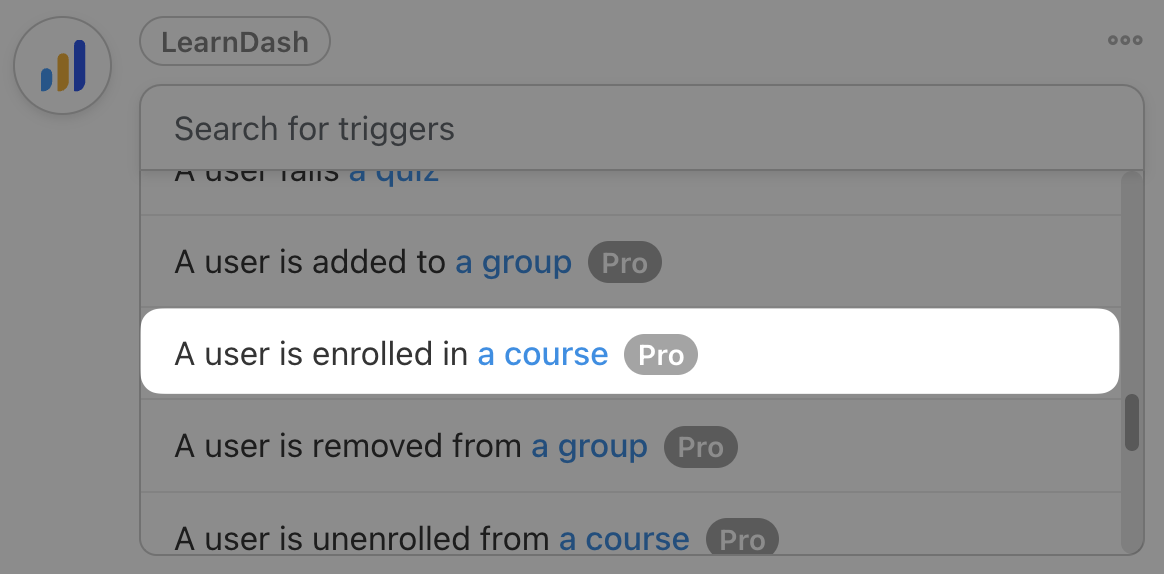 In the Trigger panel, from the menu of available integrations, select LearnDash.